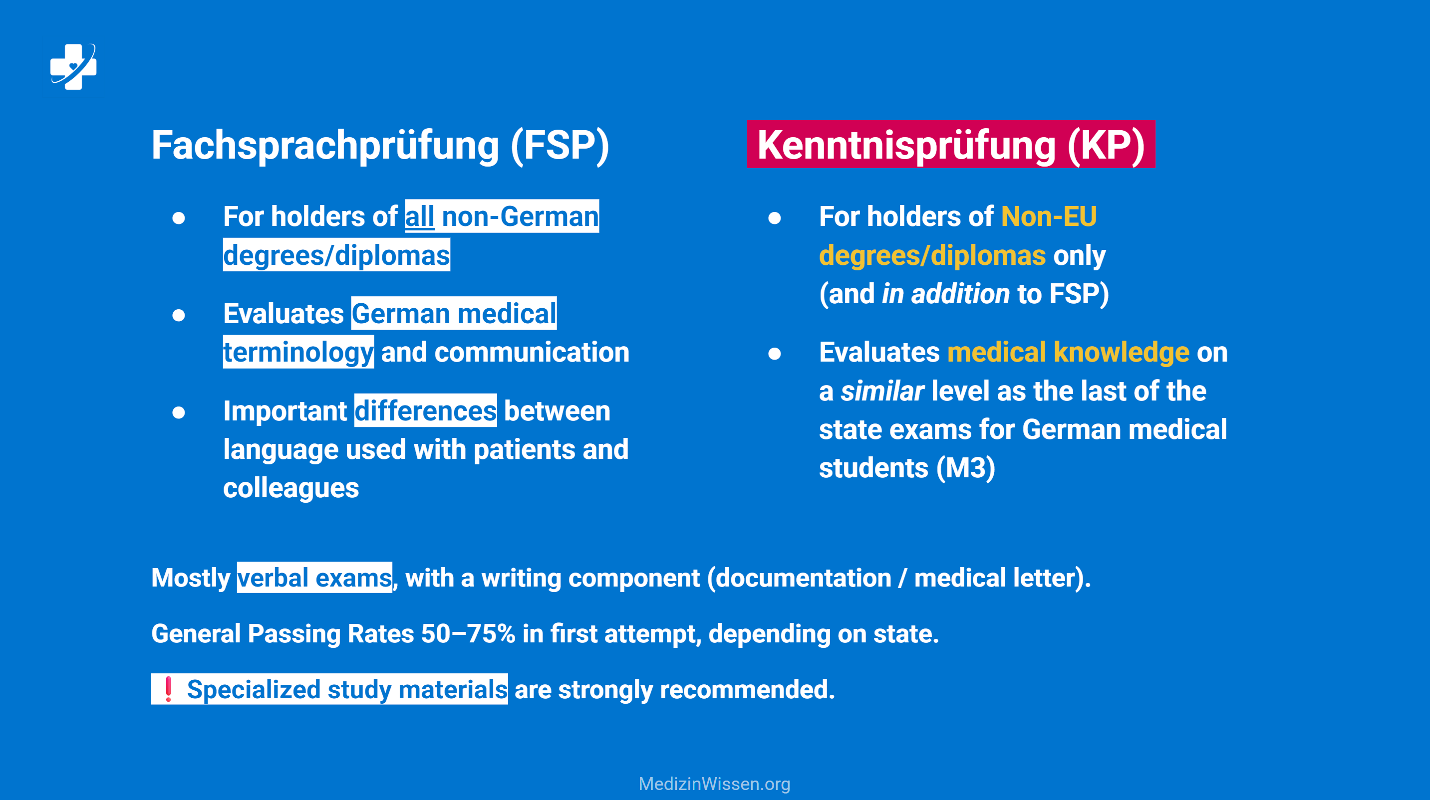 Sie sollten bei der KP keine sprachlichen oder kommunikativen Unsicherheiten mehr haben. Mit ➡️ adäquatem Training lässt sich das vermeiden. Wichtig ist, nicht zu schweigen, sondern aktiv zu kommunizieren. Der Fokus liegt zwar auf Ihrem medizinischen Fachwissen, aber natürlich brauchen Sie sprachliche Kompetenz, um ein fachliches Gespräch führen zu können, das im Niveau deutlich höher ist als bei der FSP.